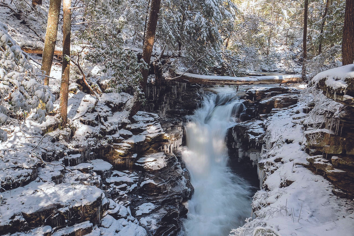 One of the most picturesque sites in the Fiery Gizzard, Black Canyon is technically a cascade, not a waterfall, but still an amazing sight, as two creeks come together and are squeezed through a narrow rock opening. Access this adventure from the Fiery Gizzard North trailhead.