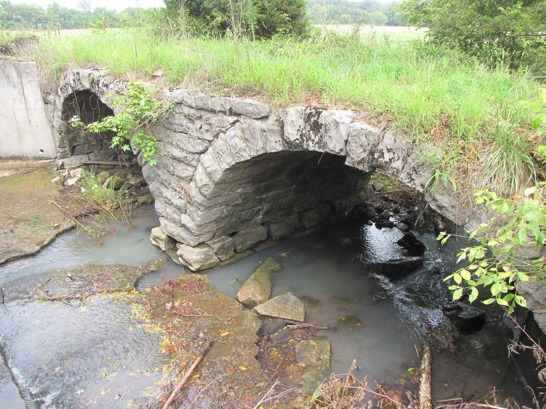 This double-arched bridge was built in 1912 for Grundy County by stonemason R.M.Crick, who also designed and built the nearby Firescald Creek and Scotts Creek Stone Arch bridges.